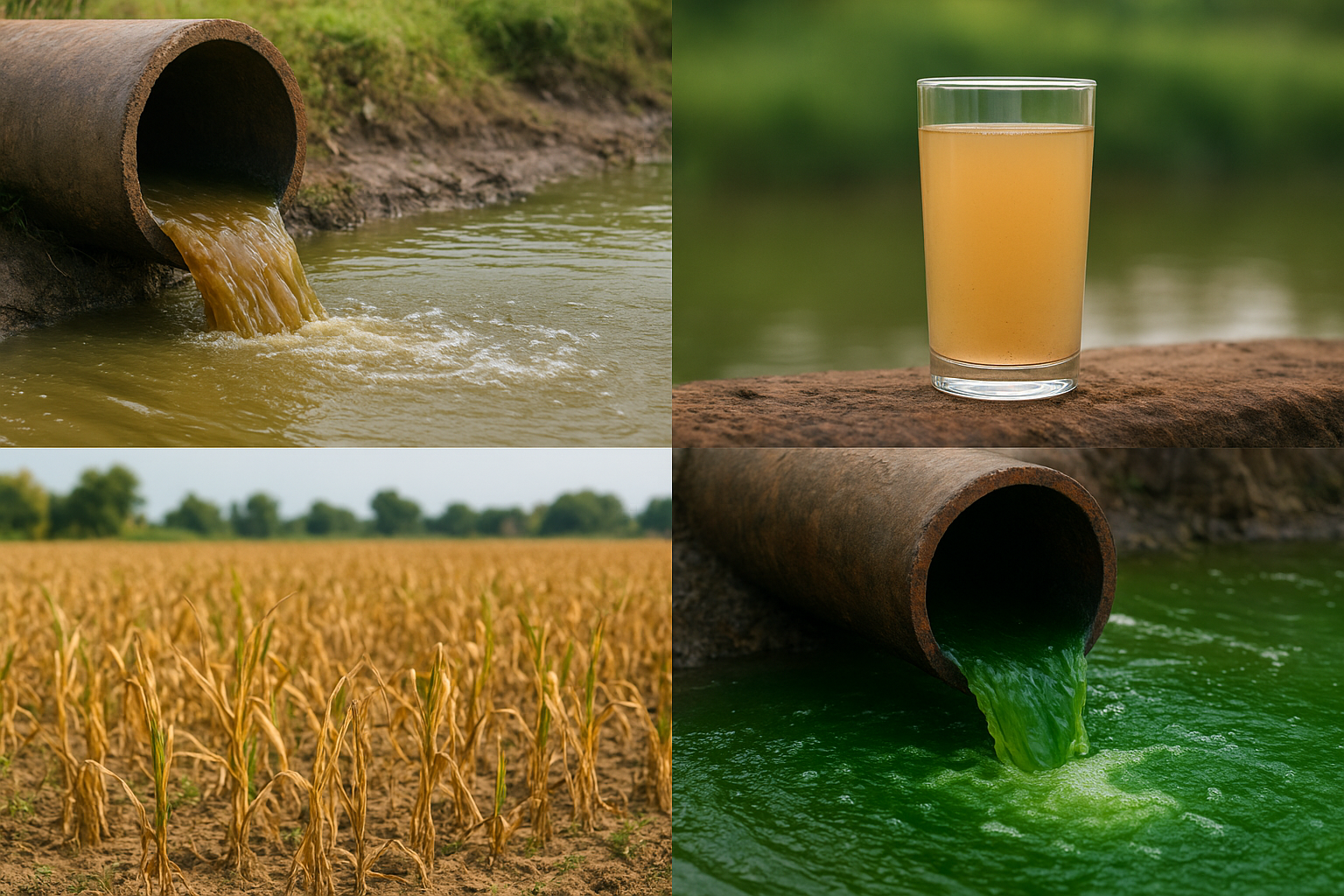 پاکستان کی زراعت کا انحصار انڈس بیسن اور اس کے معاون دریاؤں پر ہے، لیکن مختلف مطالعات کے مطابق 50 سے 100 فیصد ایریگیشن پانی غیر محفوظ ہے کیونکہ اس میں untreated سیوریج اور صنعتی فضلہ شامل ہو رہا ہے۔ شہروں کے نالے اور ڈرین براہِ راست دریاؤں میں گر رہے ہیں جس سے زمین بنجر اور فصلیں زہریلی ہو رہی ہیں۔
